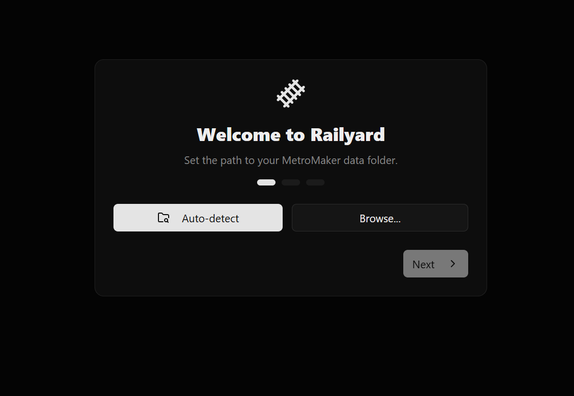 If you did not manually modify this, click "Auto-Detect". Otherwise, select the location of this folder. Railyard will automatically validate it.